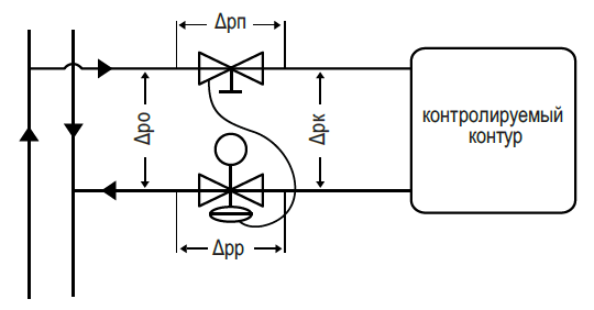 Δpр — перепад давления на регуляторе перепада давления;