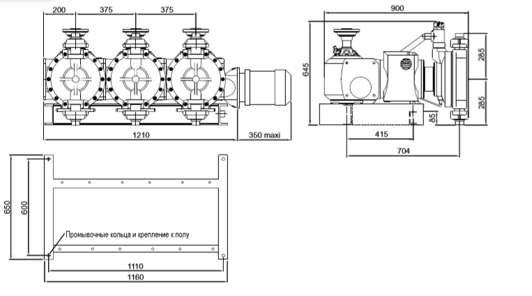 | Основные характеристики электродвигателя • Электропитание двигателя: 400 В, 50 Гц., 3 фазы в стандартной комплектации. На заказ возможна комплектация электродвигателями с другими характеристиками по напряжению и частоте