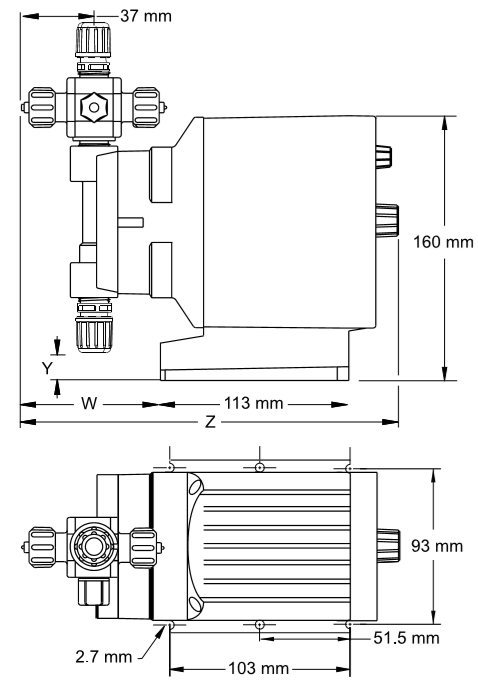 Основные технические характеристики • Электромагнитный дозирующий насос с механическим приводом мембраны