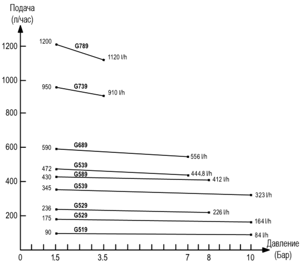 (1) Максимальная подача при давлении 1,5 Бара