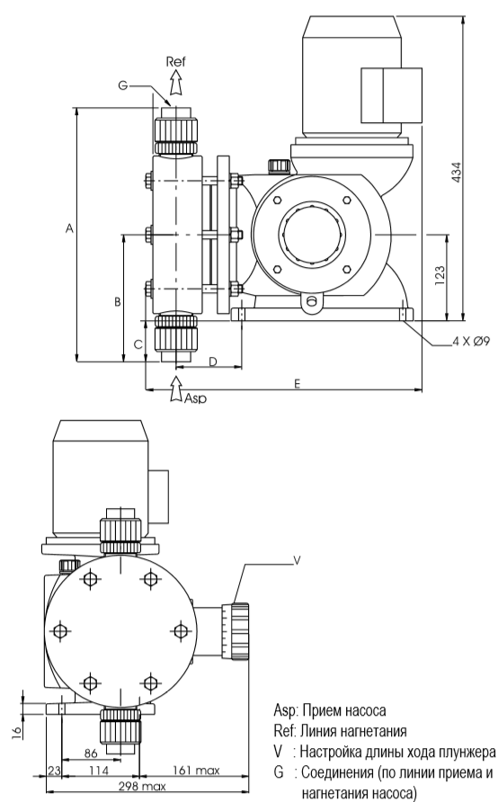 • Регулировка длины хода плунжера путем изменения положения эксцентрика, что позволяет снизить пульсацию и избежать резких ударных нагрузок