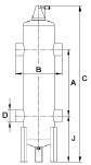 | DN, (mm) | A | B | C | D | J | Мощность, (кВт) | Расход, (м3/ч) | Вес, (кг) | ||||