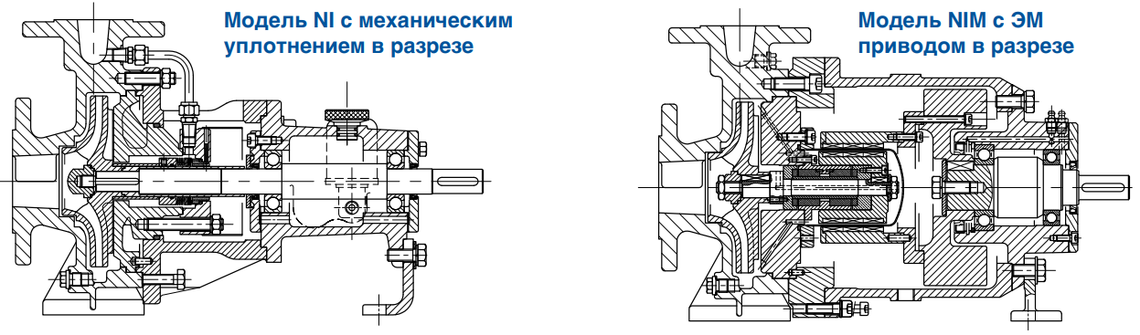 Центробежные моноблочные насосы NI предназначены для перекачки жидкостей, которые требуют применения конструкций из нержавеющей стали.