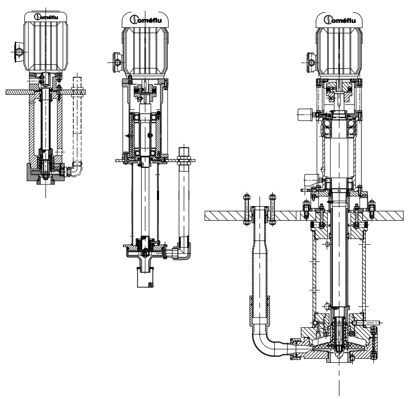 Вертикальные насосы компании SOMEFLU используются для перекачки прозрачных или слегка мутных жидкостей. Насосы VI, VLI-A снабжены полуэластичной муфтой. Насосы VLP-M, VLI-M представляют собой моноблочные конструкции. Скорость вращения может достигать 2900 оборотов в мин-1 , а длина вала - 2000 мм.