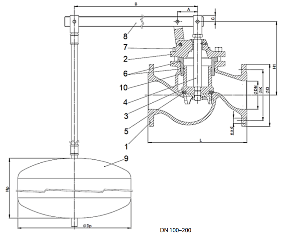 Клапан поплавковый Гранрег КАТ90, Ду25-200, Ру10, фланцевый