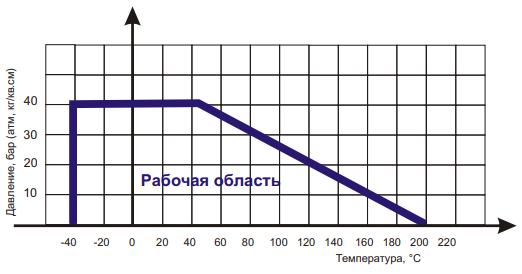 Диаграмма Давление / Температура для шарового крана ABRA-BV-027А резьбового (”муфтового”)