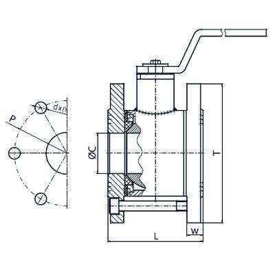 | Код для заказа" | DN, (мм) | Ø С, (мм) | L, (мм) | Т, (мм) | P, (мм) | d x n | W, (мм) | Масса, (кг) |