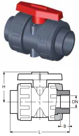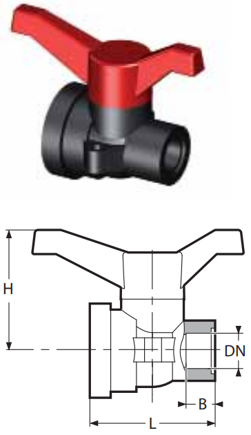 | Шаровый кран 3150 разборное соединение, муфта для полимерной сварки (стандарт DIN), материал — PPH