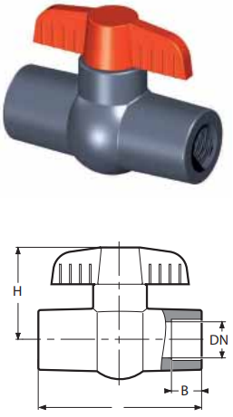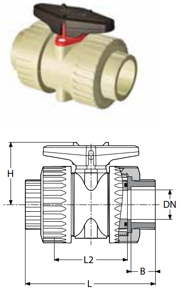 | Шаровый кран 3111, разборное соединение, муфта PVC для клеевого соединения (стандарт DIN), материал — CPVC