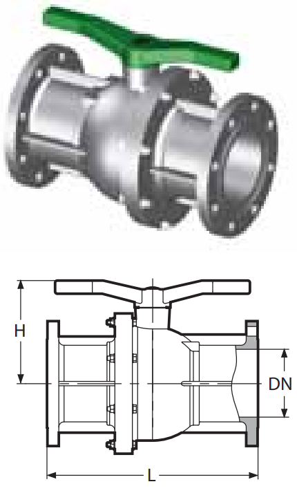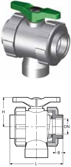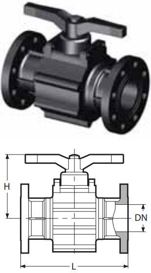 | Шаровый трехсекционный кран 1003 с фланцами DIN, материал — GRPP