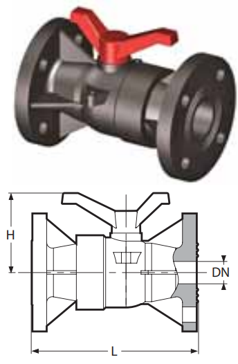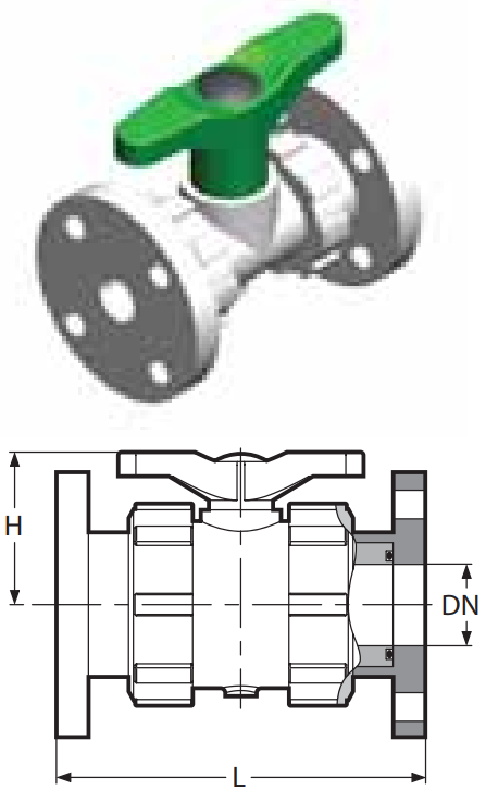 | Шаровый кран 2029 с фланцами DIN, материал — PVDF