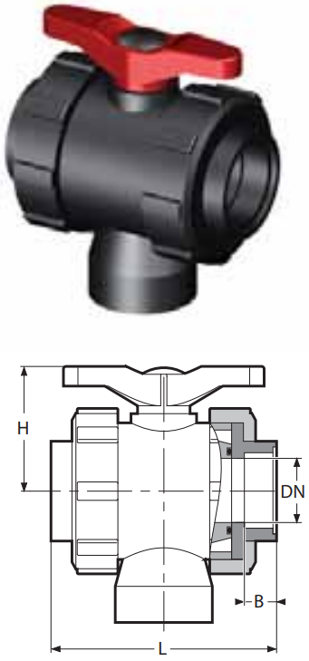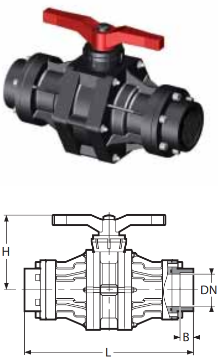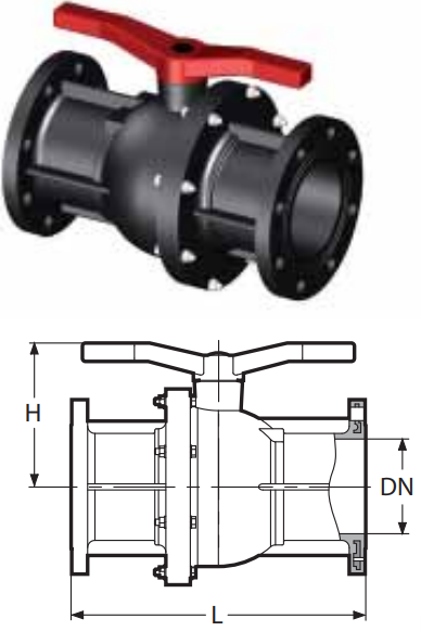 | Шаровый трехсекционный кран 2091 с фланцами DIN, материал — PP-ATEX