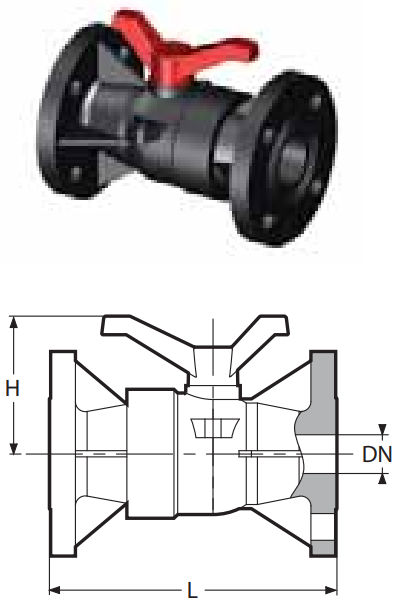 | Шаровый кран 2027, разборное соединение, фланцы DIN, материал — PVDF