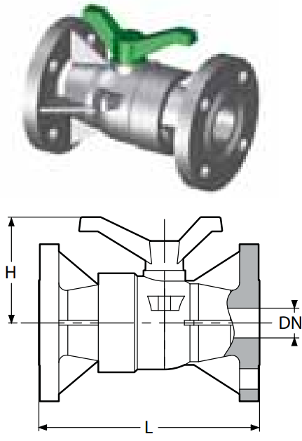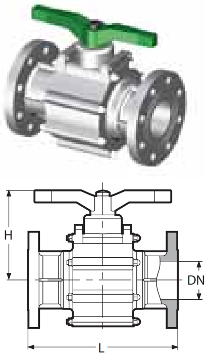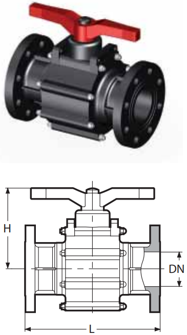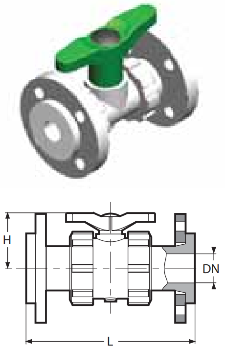 | Шаровый трехсекционный кран 2027, с фланцами DIN, материал — PVDF
