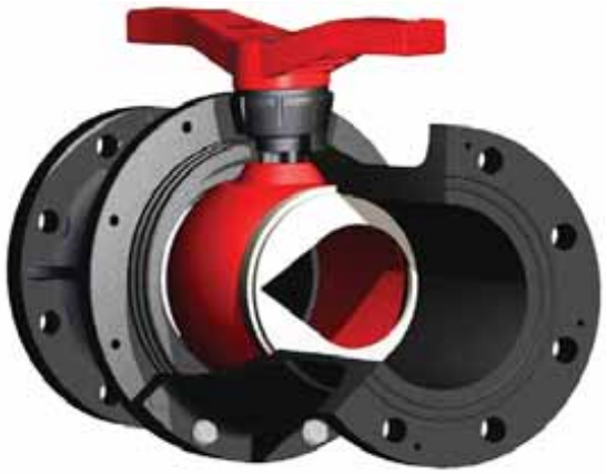 | Шаровый кран 2008 с фланцами DIN/ANSI с металлическими вставками, материал — GRPP