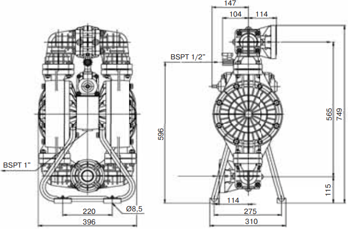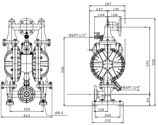 Для насосов с корпусом из полипропилена максимальная температура перекачиваемой жидкости составляет 82 °C, независимо от материала мембраны. Для насосов с корпусом из металла или ПВДФ максимальная температура определяется материалом мембраны.