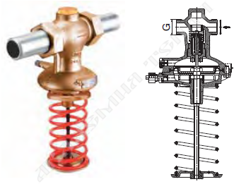 Перепускной клапан для воды и воздуха ГРАНРЕГ КАТ42. Описание КАТ42 является регулятором давления “до себя” прямого действия с мембранным приводом. Клапан имеет металлическое седловое уплотнение и предназначен для воды, воздуха и негорючих газов. Технические характеристики Присоединение резьба G1/2 - 1 1/4 фланцы DN15-32 мм сварка DN 15-32 мм Условное давление РN1,6 МПа, РN2,5 МПа Рабочая температура вода: до 150 ºС воздух: до 80 ºС Входное давление 0,01 – 0,4 МПа (3 диапазона) Величина Kvs 3,6 – 10,0 м3/час Допустимая протечка...Подробнее