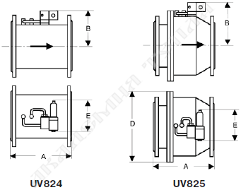 UV824: размеры, (мм); масса, (кг)