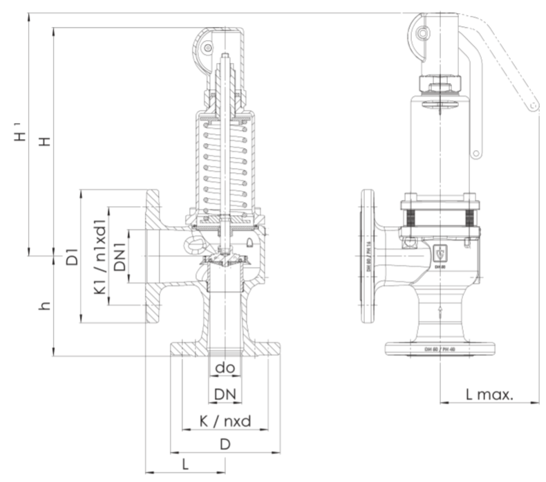 Предохранительный клапан сброса давления воды GOETZE 452, Ду40-50, Ру25, Тмакс 400С