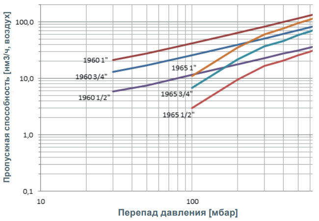 • Пропускная способность при перепаде давления 100 мбар составляет 3 нм3/ч или 0,8 нл/с (воздух)
