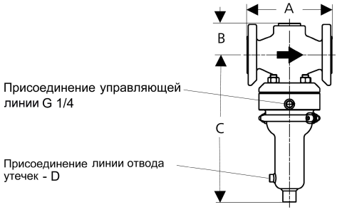 Управляющая линия присоединяется к трубопроводу на расстоянии 10 - 20 номинальных DN после клапана
