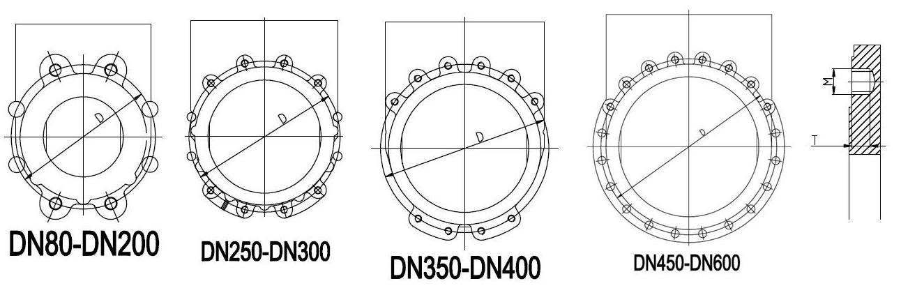 Требования к ответному крепежу сквозных отверстий: Ду50 Ду65 Ду80 Ду100 Ду125 Ду150 Ду200 Ду250 Ду300 Ду350 Ду400 Ду450 Ду500 Ду600