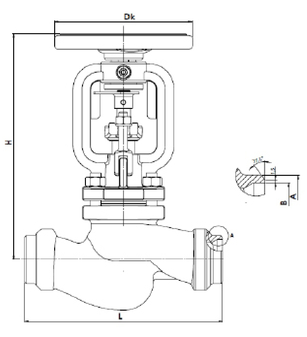 Вентиль запорный сальниковый, под сварку ZETKAMA V217, Ду15-100, Ру40, Тмакс.=450 °С
