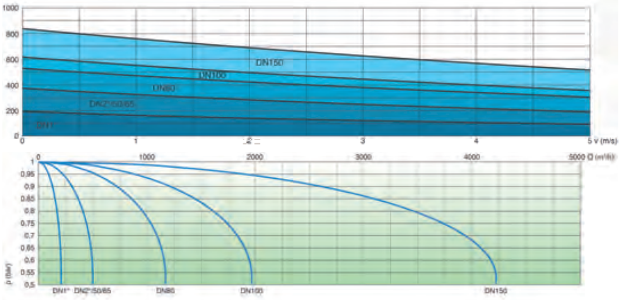 Версия 3НР-AS Выбор диaметрa клaпaнa с зaвисимости от диaметрa трубопроводa и скорости потокa среды