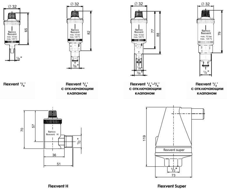Flexvent 1/8 F17.111E1.13 1/8 * внешнее 120 10 латунь нет