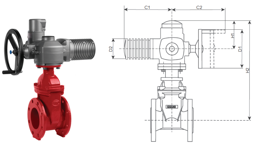 Задвижка клиновая пожарная, под электропривод АДЛ ГРАНАР KR15, Ду50-300, Ру16